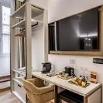 Ótimo jeito de encerrar o fim de semana. Banheiros bem equipados, cama grande, um quarto belo. Tem uma boa quantidade das instalações no quarto como: aquecimento central, TV de tela plana e um mini frigobar. É um hotel boutique excelente na área animada de Roma.